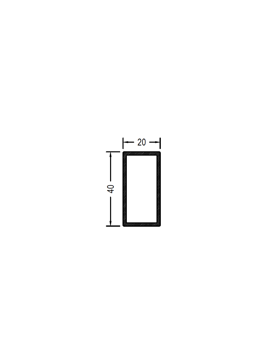 Perfil rectangular de 40 mm x 20 mm y 1.3mm de espesor